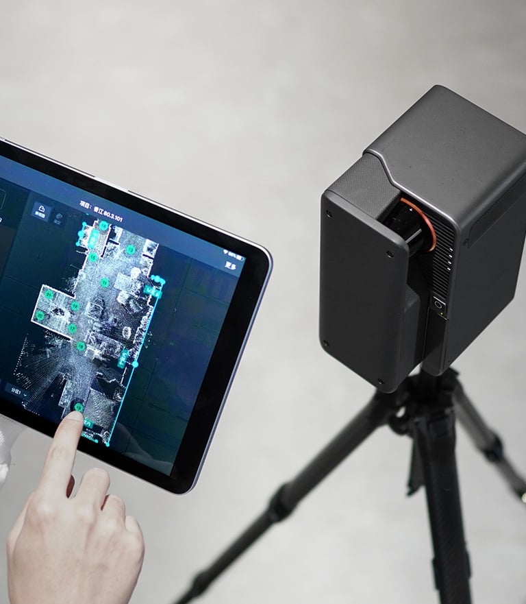 Notre processus commence avec la caméra "GALOIS", qui capture votre espace avec une précision extrême, créant des modèles 3D détaillés, même dans les environnements les plus complexes.